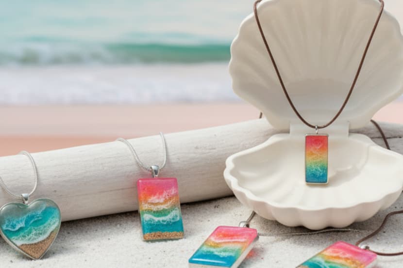 This handmade resin heart necklace features authentic sand sourced from Florida beaches, allowing you to carry a piece of your vacation home with you. The 24-inch stainless steel chain ensures dura...