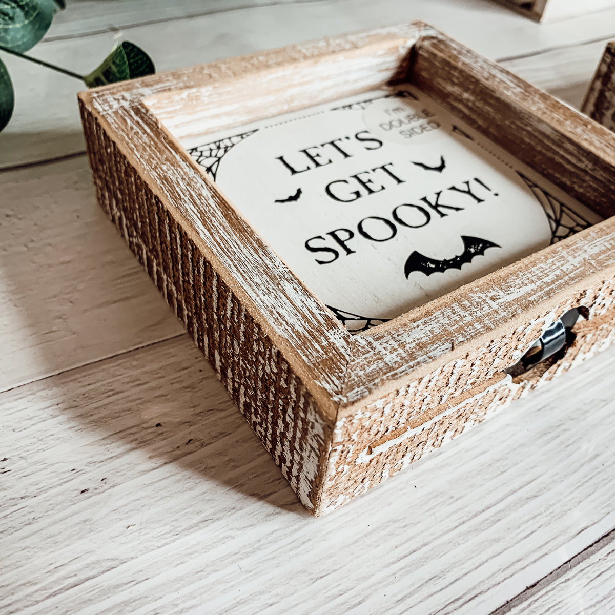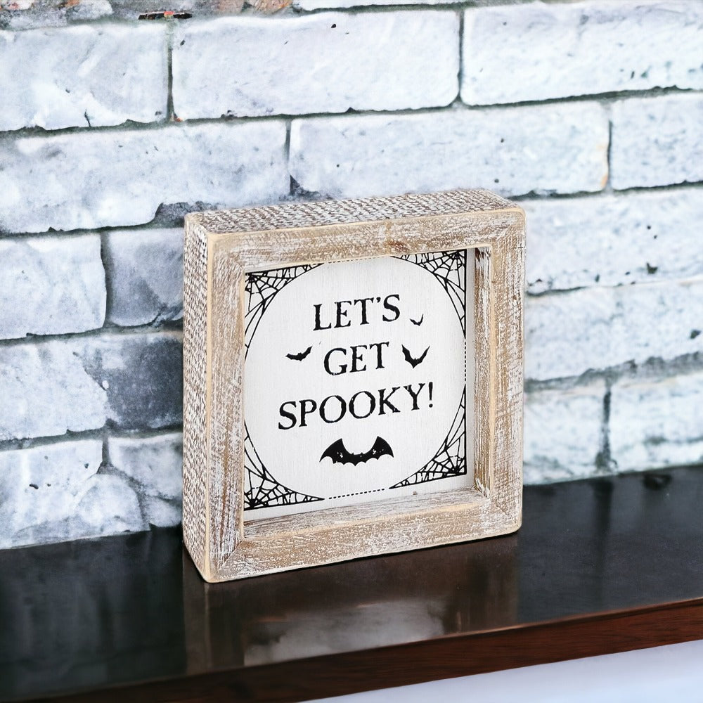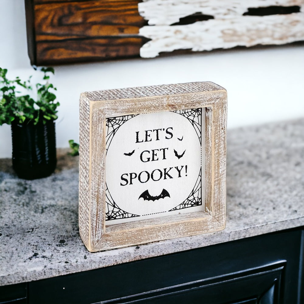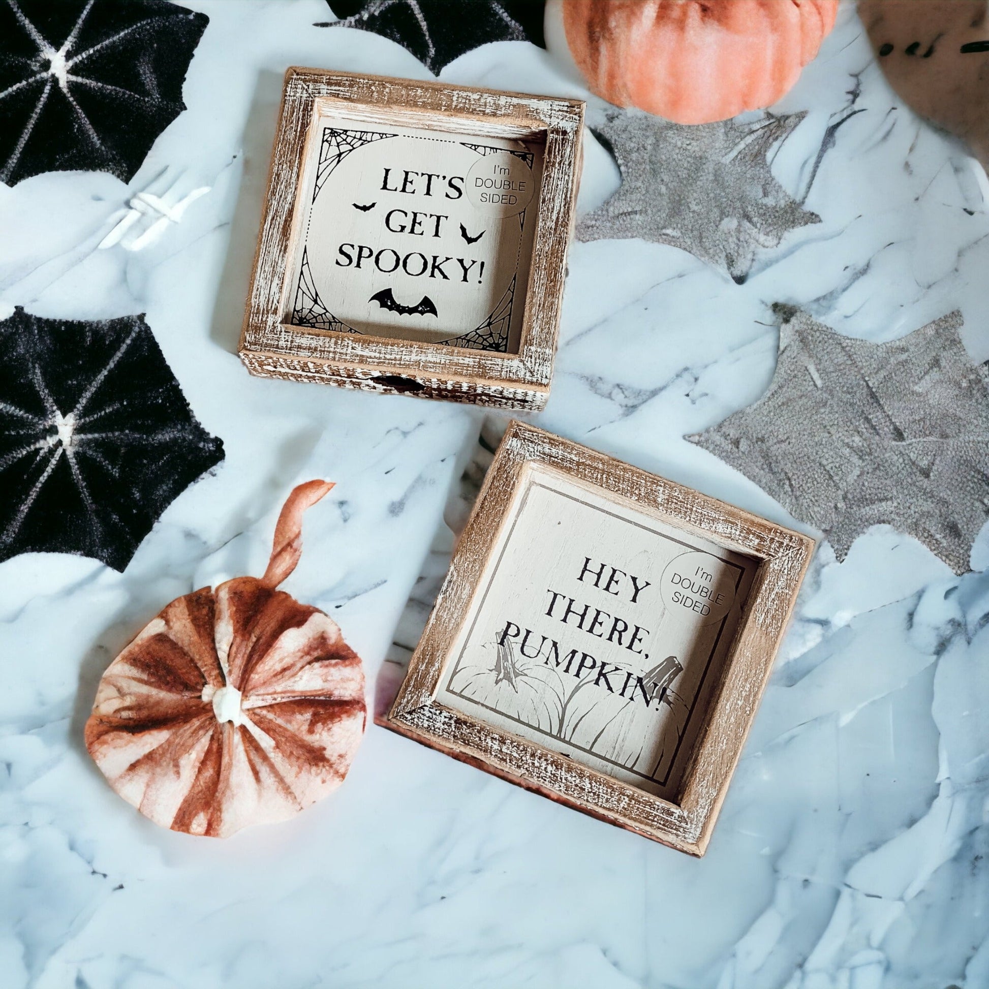 Once fall hits, display "Hey There Pumpkin!" When Halloween is around the corner, turn it over to display the "Let's Get Spooky" Sign!