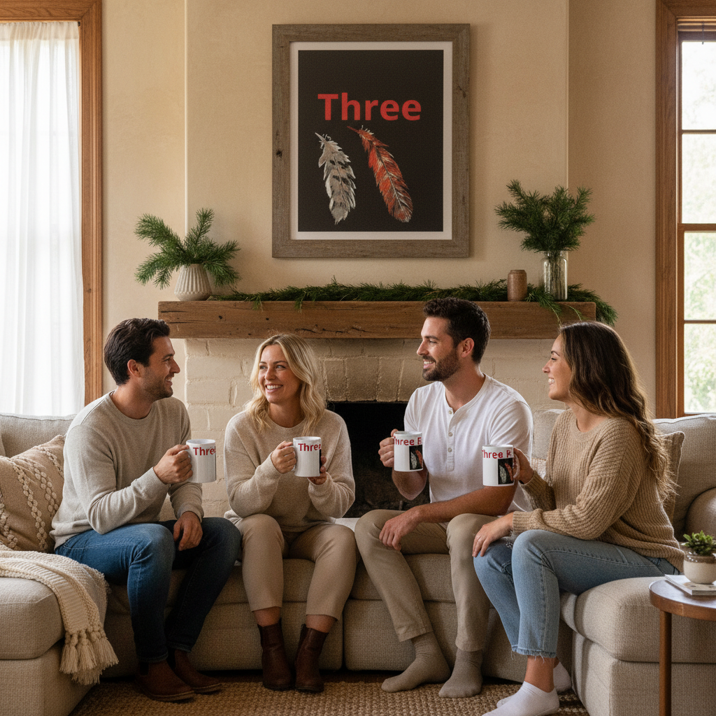Three feathers collection Whether you're drinking your morning coffee, evening tea, or something in between—this mug's for you! It's sturdy and glossy with a vivid print that'll withstand the microwave and dishwasher.